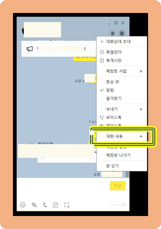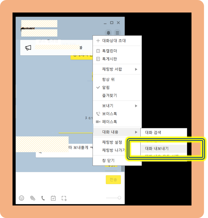 첫번째. 카카오톡 대화내용 내보내기 (PC)