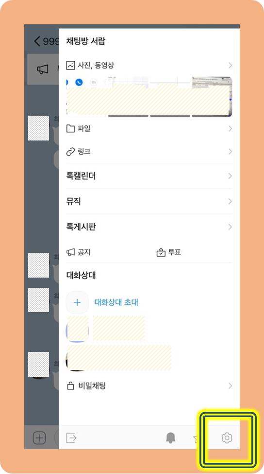 이번에는 대화방에서 채팅방 서랍을 먼저 클릭해주세요