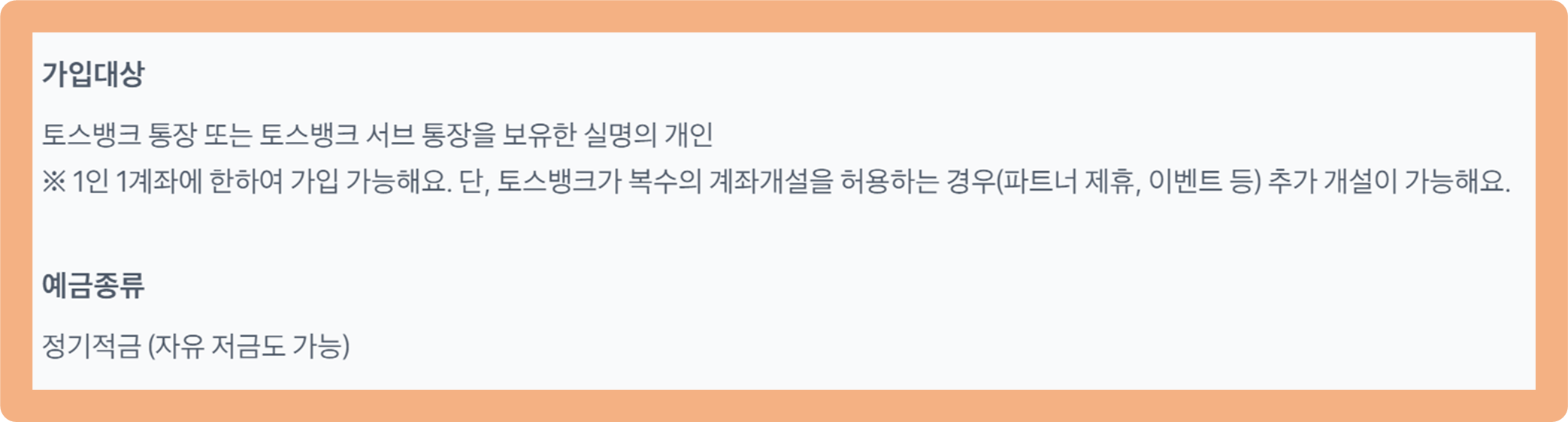키워봐요 적금은 토스뱅크 통장 또는 토스뱅크 서브 통장을 보유한 개인 1인당 1개의 계좌만 개설 가능하구요.