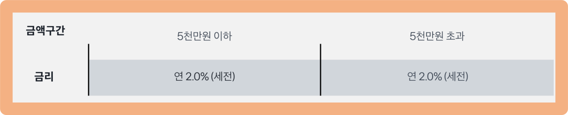 - 예치금액이 5천만원 초과 : 금리 연 2%