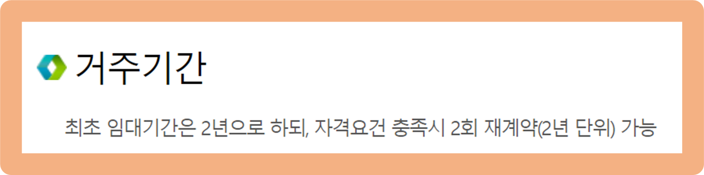그리고 자격 조건을 계속해서 유지한다면, 2년 단위로 총 2회까지 재계약할 수 있다는 점 참고해주시길 바랄게요.