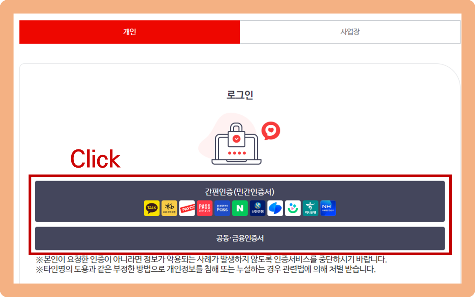 해당 문서를 발급하려면 본인 인증을 해줘야 되는데요. 간편인증, 공동인증서, 금융 인증서 3가지 방법 중 편한 방법을 선택해서 본인 인증을 진행해주시길 바랄게요.