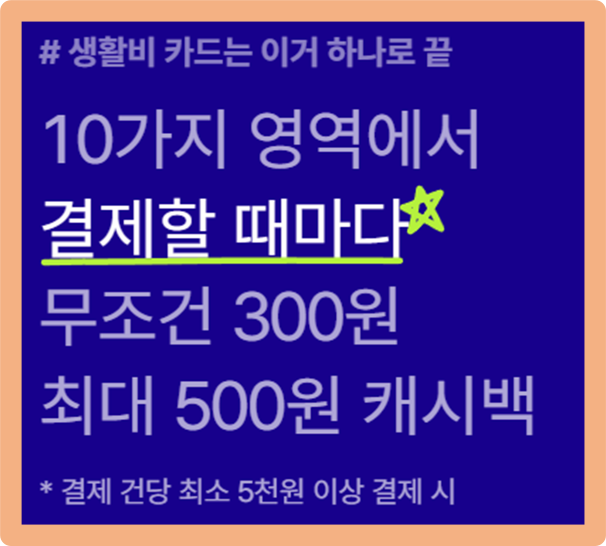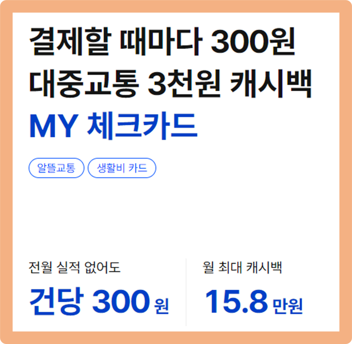 물론 앞서 말씀드린 것처럼 따로 전월 실적을 충족하지 않아도 기본적으로 건당 300원의 캐시백 혜택을 받을 수 있는데요.