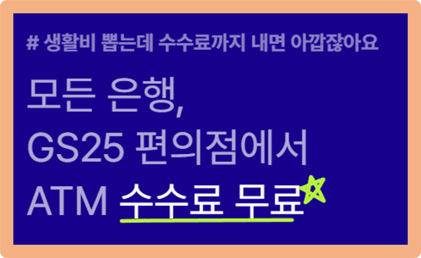 게다가 수수료 무료 혜택 까지 있어요. 케이뱅크 알뜰교통카드를 이용할 경우 모든 은행 및 GS25 편의점 ATM 이용 시 수수료가 발생하지 않아요.
