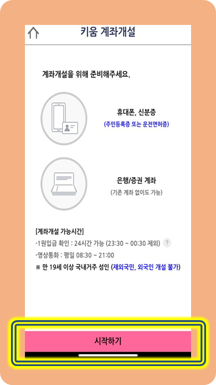 계좌개설 시작하기를 눌러주세요.