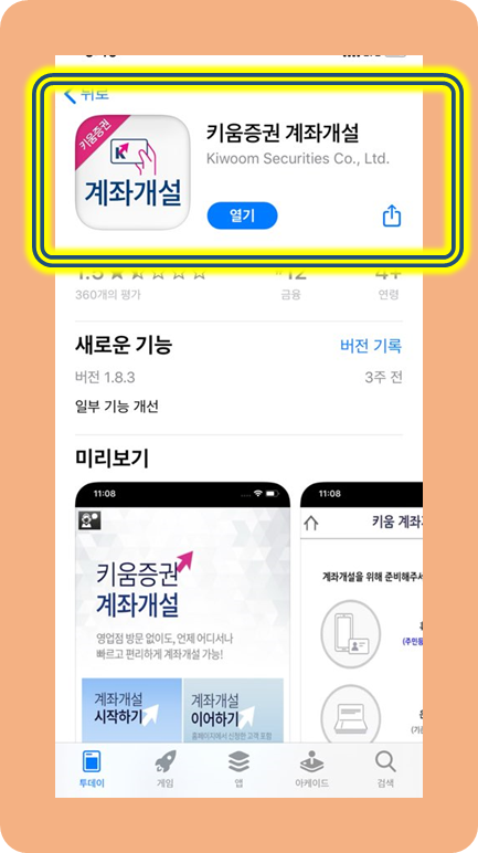 키움증권 계좌 개설이라는 어플리케이션이 있어야 합니다