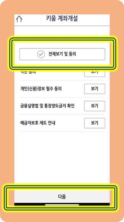 전체보기 및 동의를 선택한 후 [다음]을 클릭합니다.
