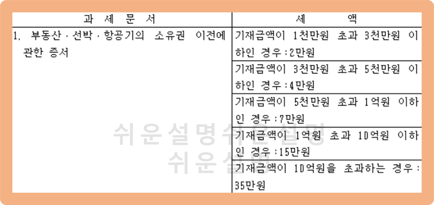 그리고 우리나라 대부분의 아파트는 1억원~10억원에 해당하기 떄문에, 통상 15만원의 인지세 납부 의무가 발생해요.