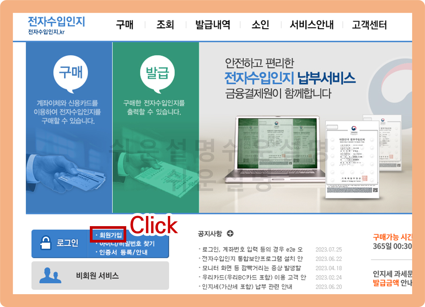 인터넷 전자 인지세 납부 방법 - 회원가입 진행하기