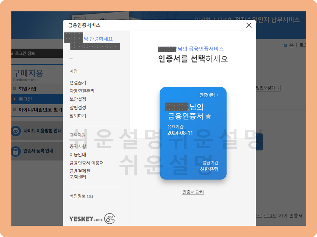 저는 금융인증서를 통해 본인 인증을 진행했으며, 인증 완료 후 회원가입이 완료되면 방금 생성한 아이디로 로그인을 해주시면 돼요.