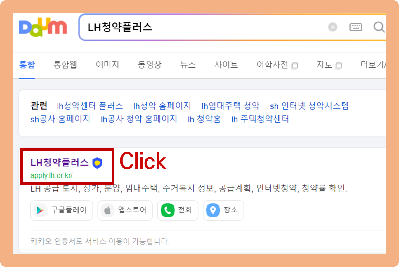 검색창에 'LH청약플러스'를 검색해주시면, 상단에 홈페이지가 나올텐데, 이 곳을 클릭해서 접속해주세요.
