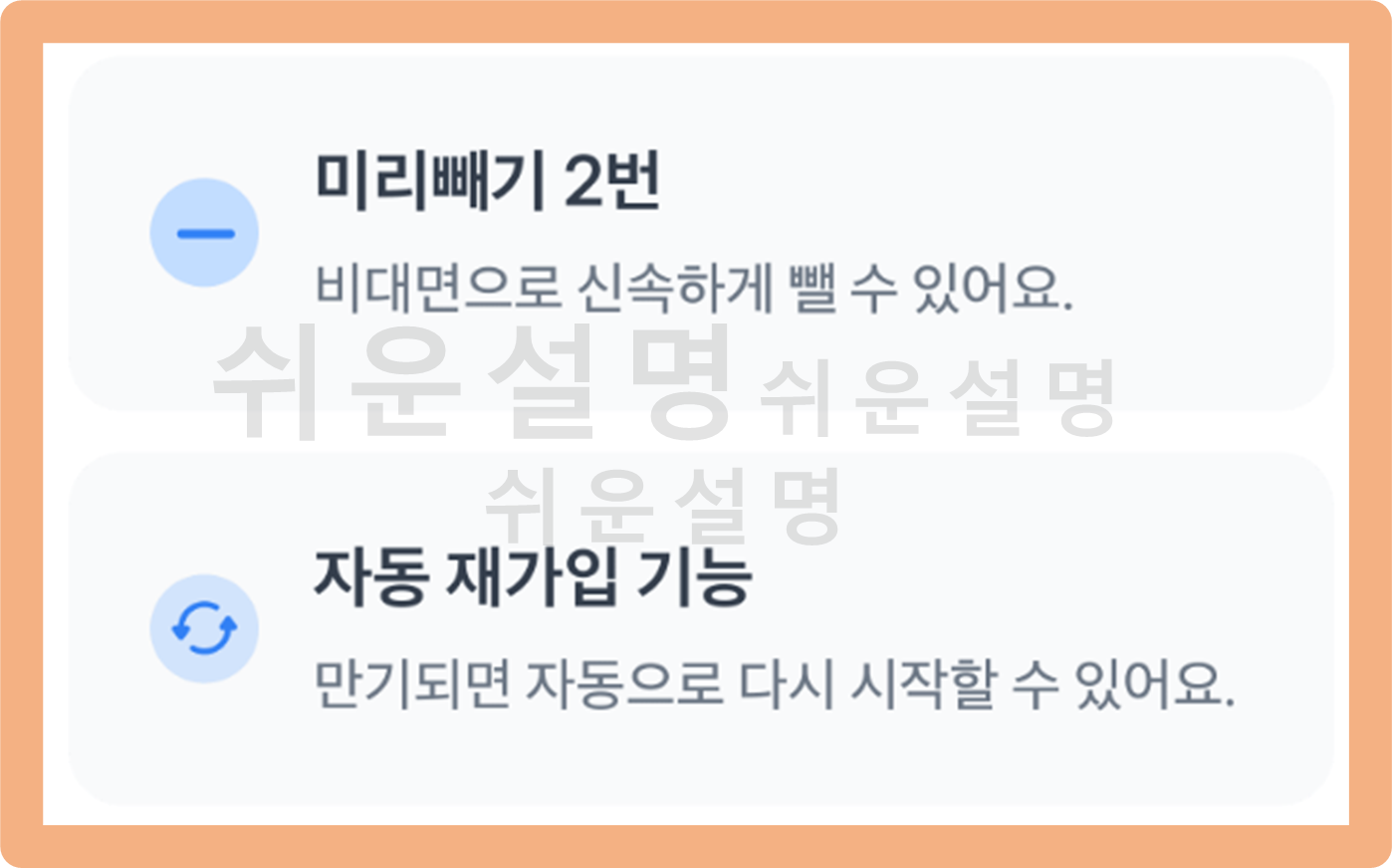 그리고 1년 만기가 지날 경우에는 자동으로 재가입해주는 기능이 있기 때문에, 다시 신청을 할 필요가 없다는 장점도 있죠.
