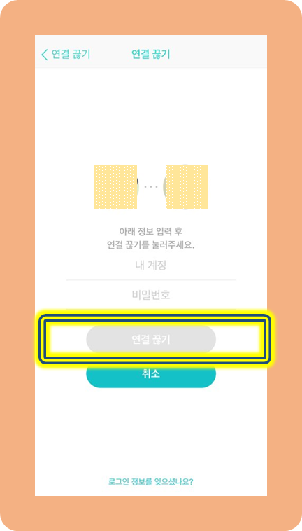 이제 계정 ID와 암호를 입력하고 연결 끊기를 클릭해주세요.