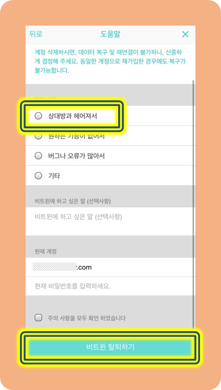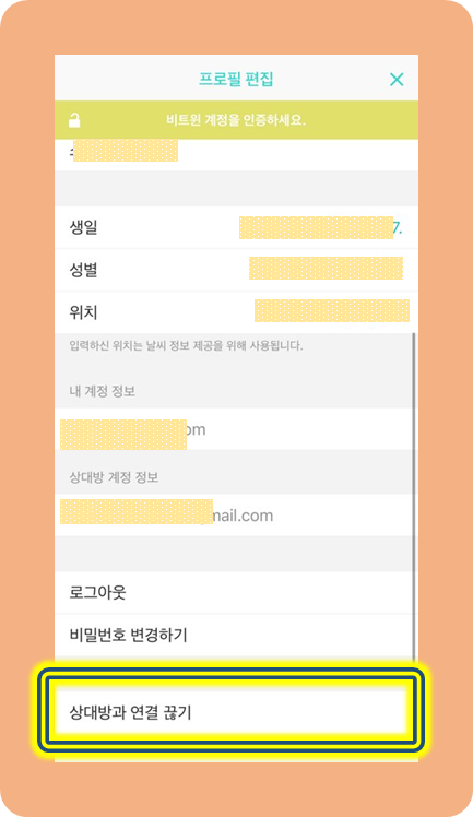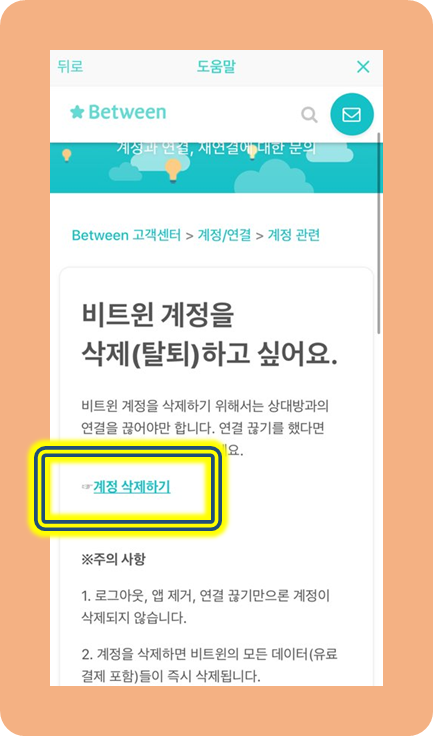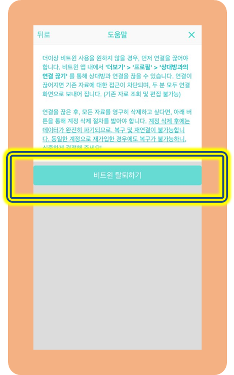 비트윈 연결끊기 및 계정 삭제 탈퇴, 끊으면 알림?