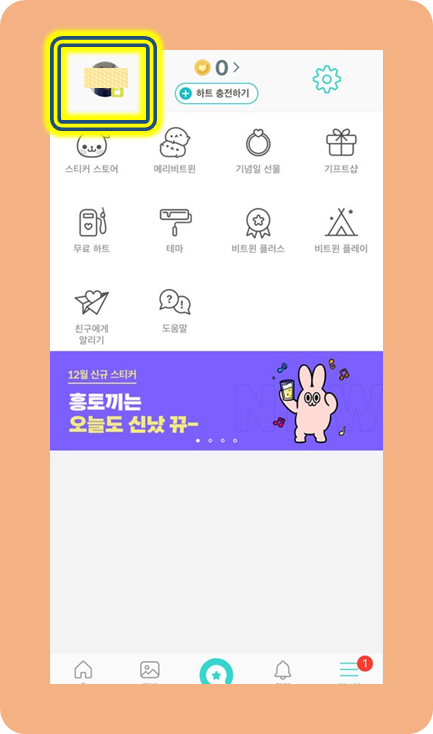 왼쪽 상단 모서리에 있는 프로필 사진 부분을 눌러주세요.