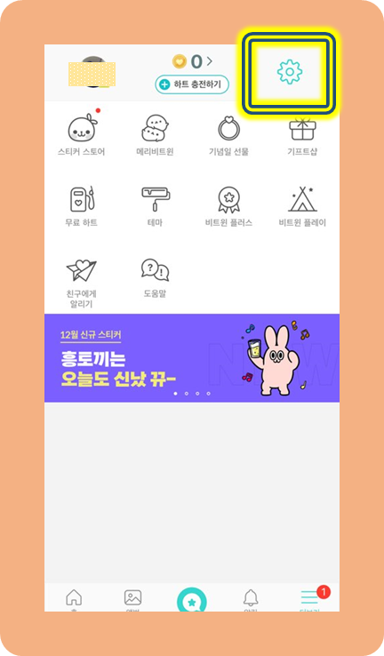 이번에는 오른쪽 상단 모서리에 있는 설정을 눌러주세요.