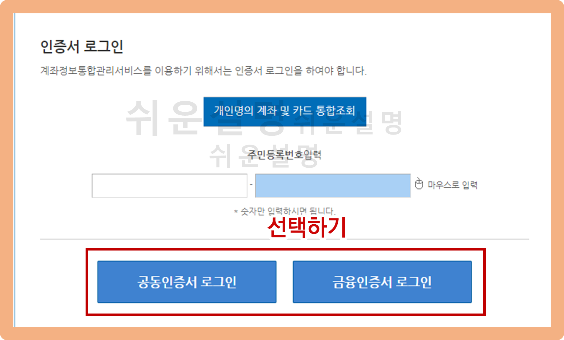 그 다음은 로그인을 하기 위해 본인 인증을 진행해줘야 돼요. 공동인증서와 금융인증서 중에서 원하는 인증 방법을 선택해 본인 인증을 진행해주시면 돼요.