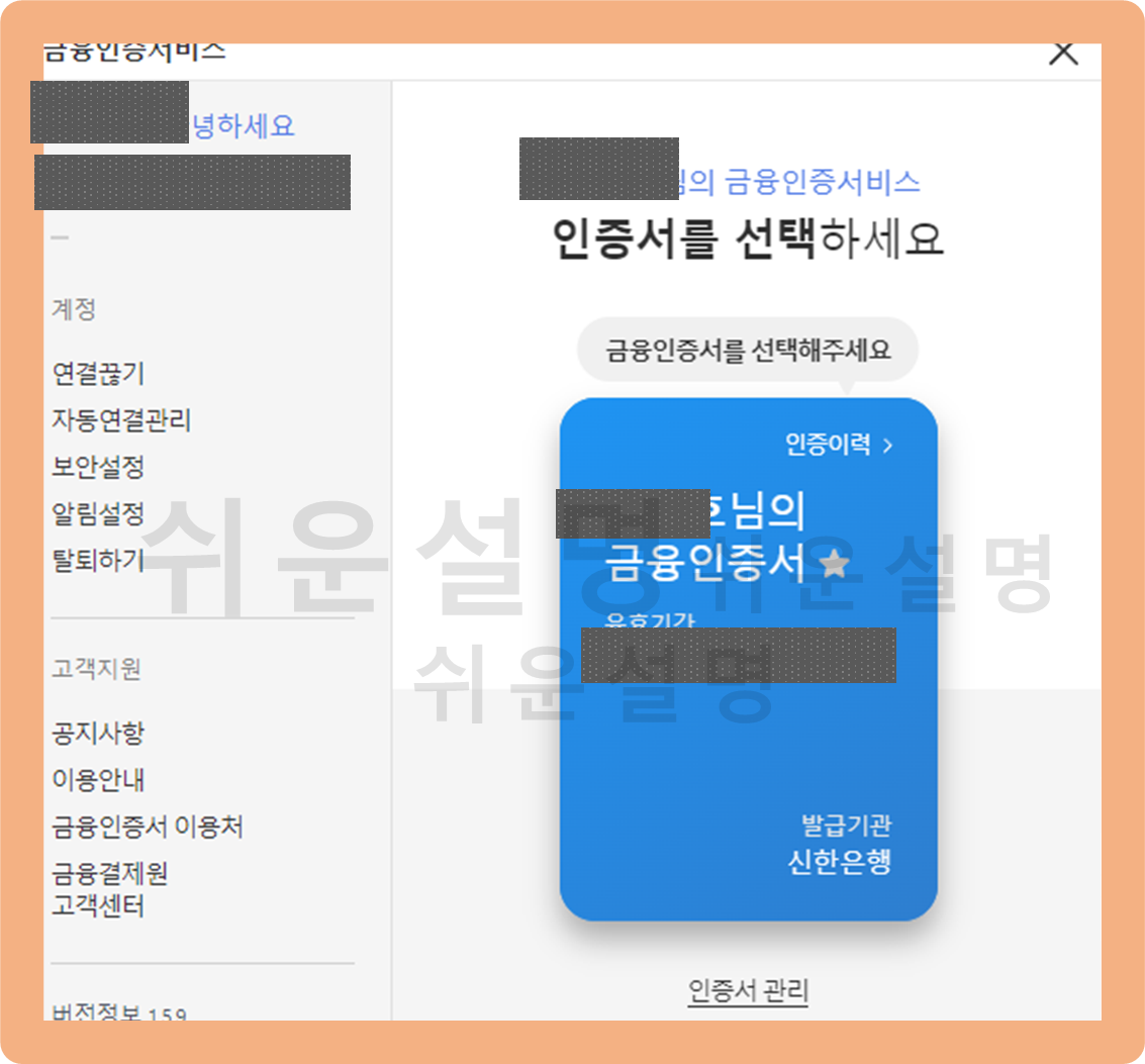 저는 예시를 보여드리기 위해 금융인증서를 통해 진행했어요. 저처럼 금융인증서를 통해 진행하시는 분들은 위와 같은 화면이 나오며 인증이 완료될 거에요.