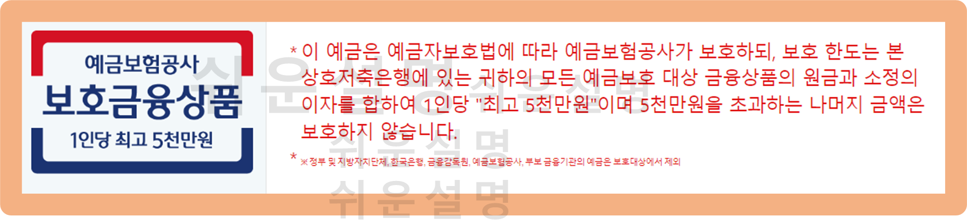그리고 1인당 가입 가능한 저축 한도는 5,000만원이구요. 예치 기간에는 제한이 없어요.