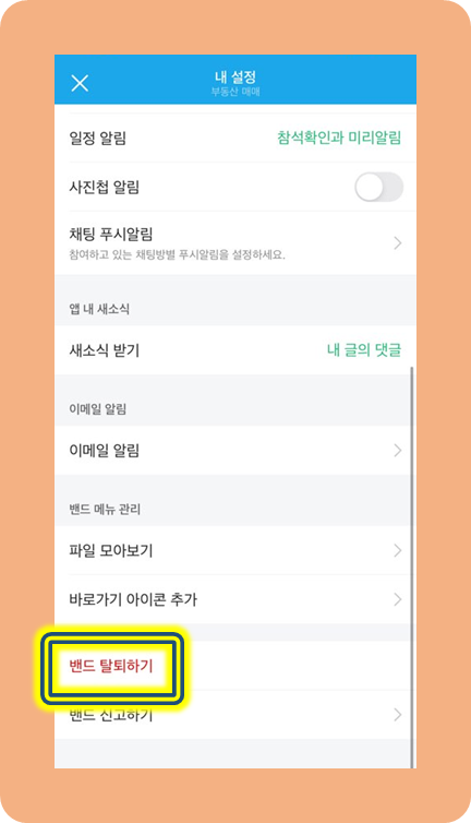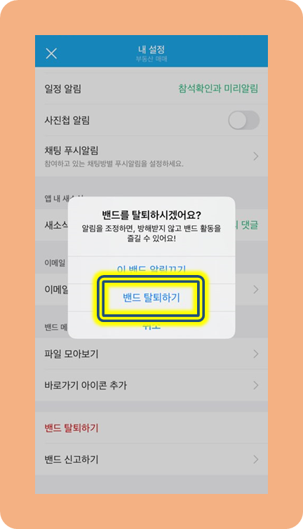 어차피 탈퇴하실 거니까 밴드 탈퇴하기를 다시 눌러주시면 돼요.