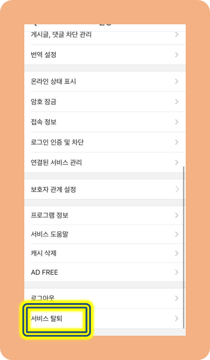 그러면 서비스 탈퇴 버튼이 보이니까 누르시면 돼요