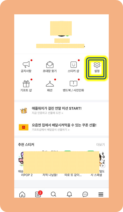 프로필,과 알림을 포함한 다양한 메뉴가 있네요
