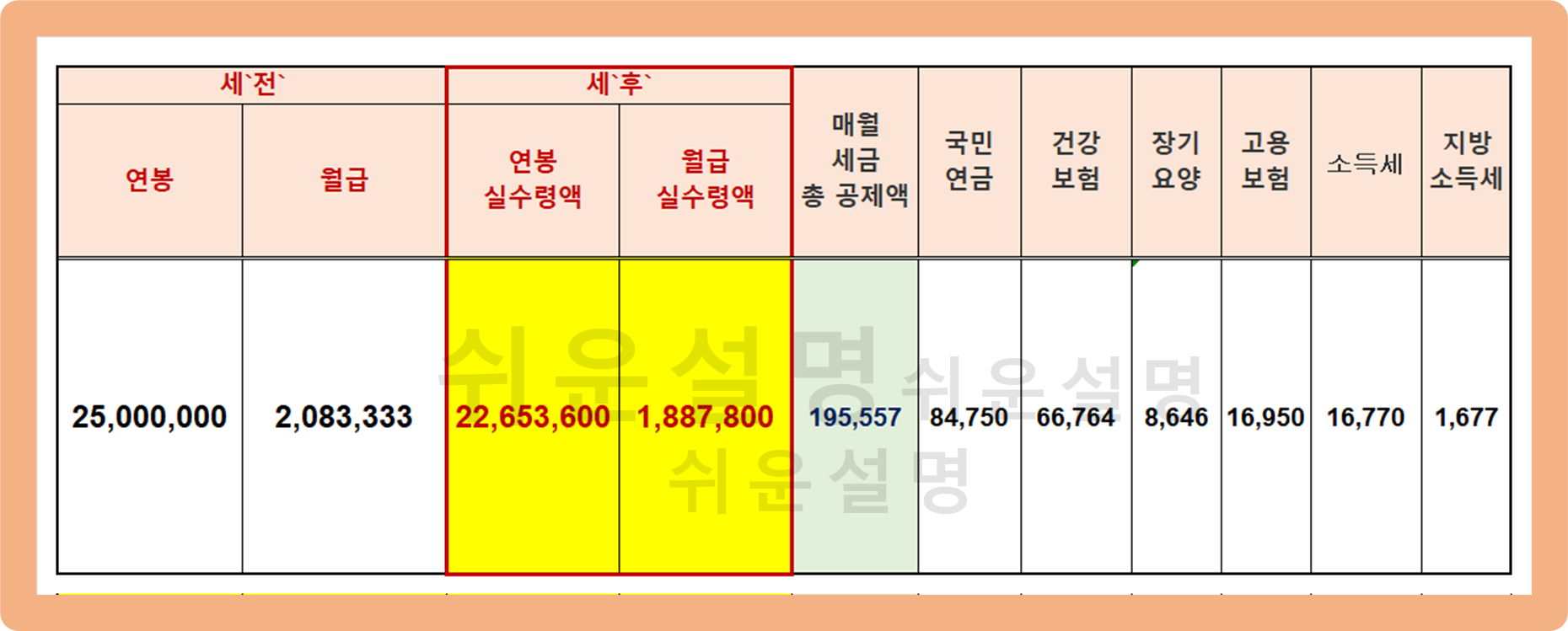 연봉 2500 실수령액