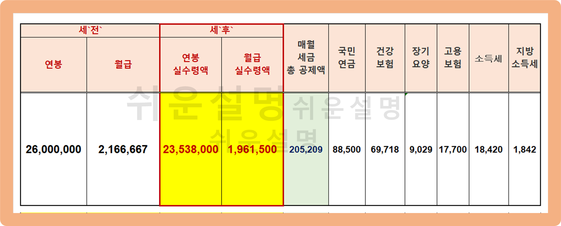 연봉 2600 실수령액