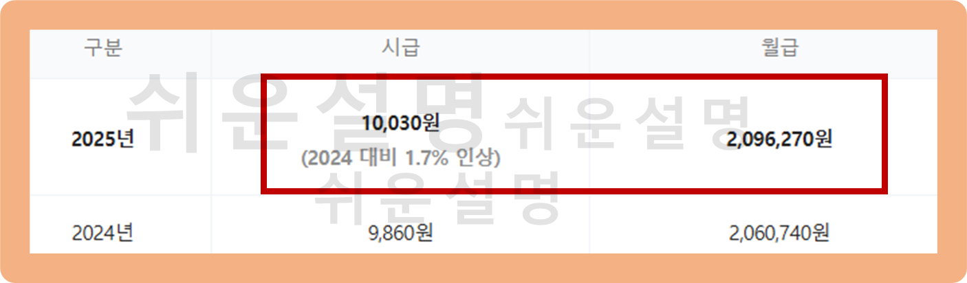 2025년 최저시급은 10,030원으로 시급 1만원을 돌파했어요.