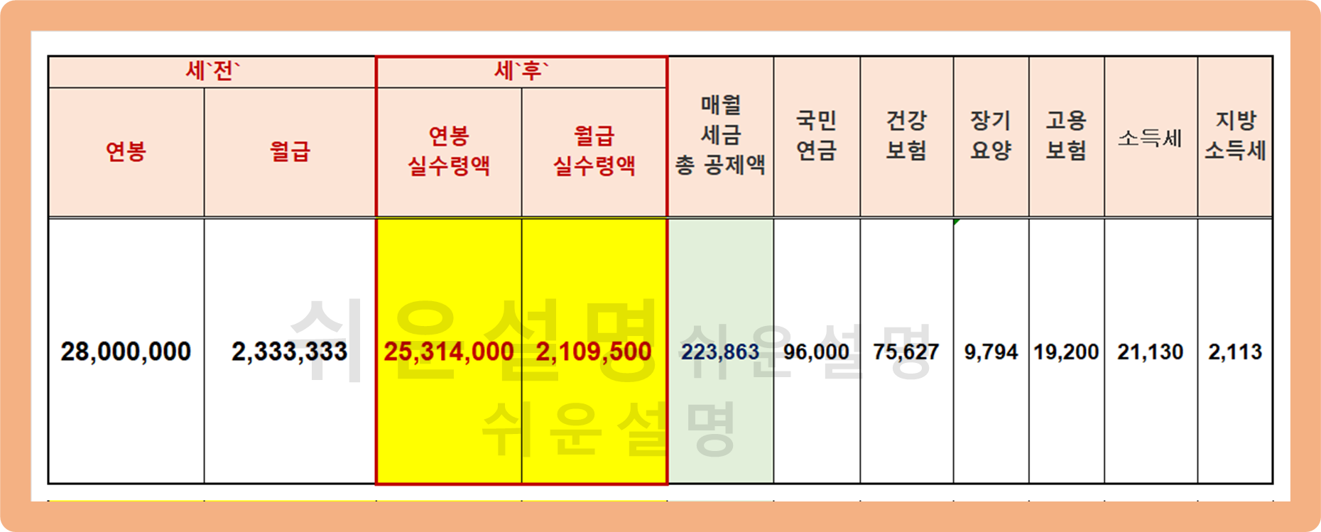 오늘은 연봉 2천만원 중후반대(2500~2900만원) 구간의 세전 및 세후 실수령액을 함께 알아볼게요.