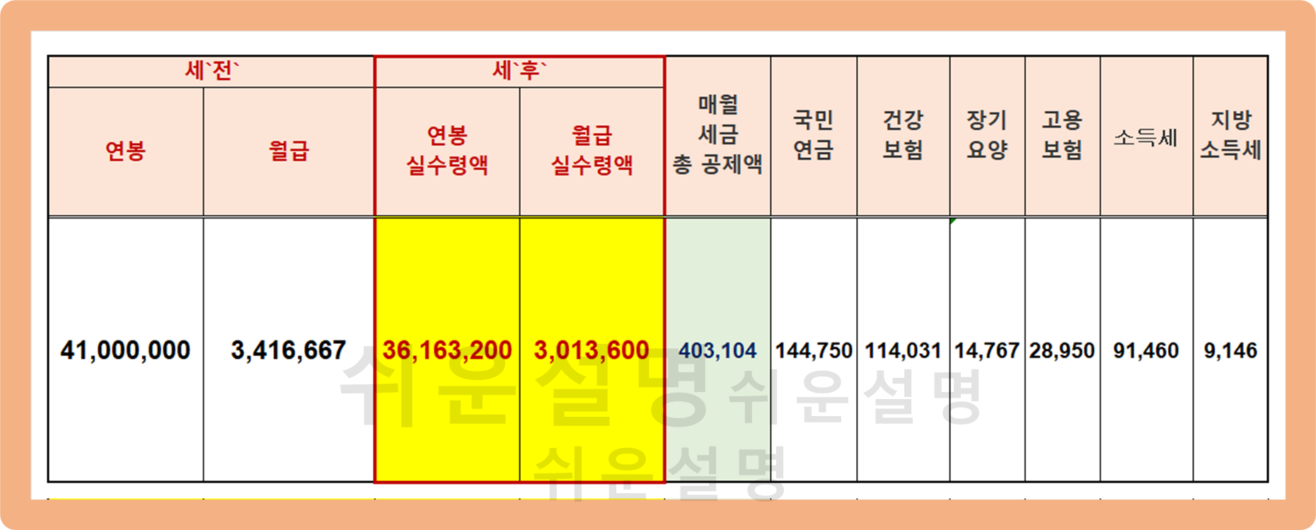 연봉 4100 실수령액