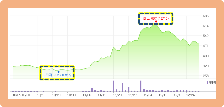 20년도 9월에 매수를 했다면... 3개월 만에 최소 두 배의 수익을 올릴 수 있었습니다