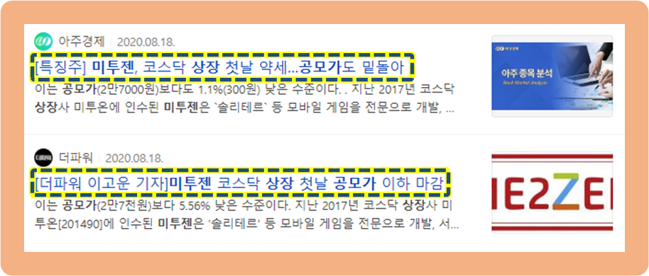 카카오게임즈의 상장 이후 따따상 사태와 비교하면, 다소 아쉽습니다.