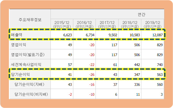 2017년까지 당기순이익은 43억 원이었습니다. 2018년 347억 원으로 약 8배 급증했고 2019년 현재 563억 원을 기록했습니다.
