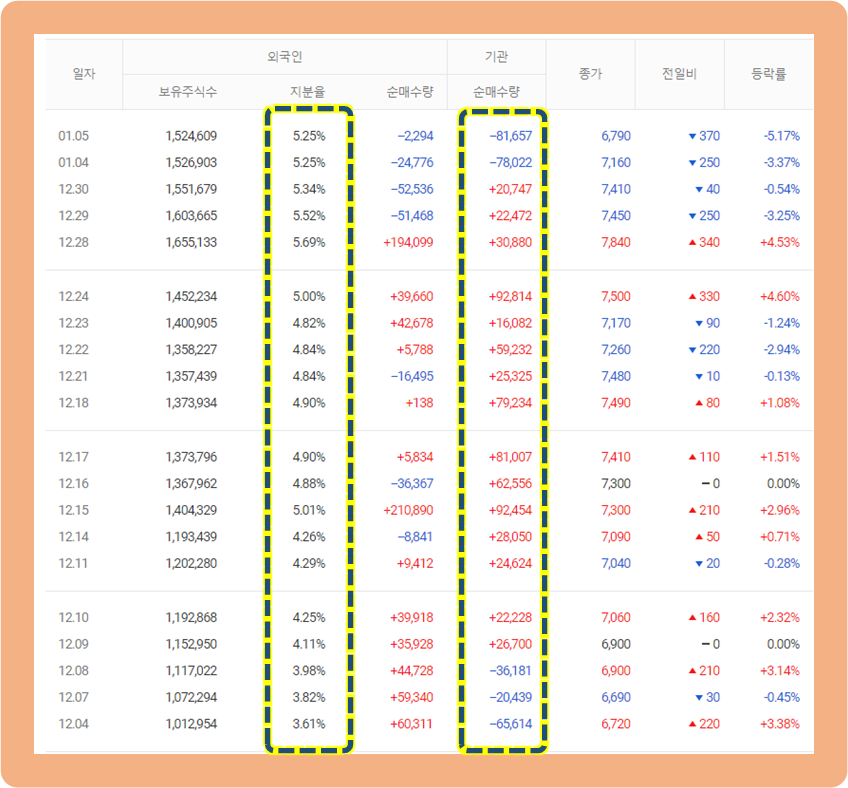 작년 12월 초 3%대였던 외국인의 보유율은 현재 5%를 넘었습니다.