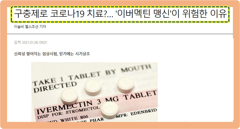 끝으로 이버멕틴의 임상 결과를 부정적으로 보는 기사를 살펴보면서 끝마치겠습니다.