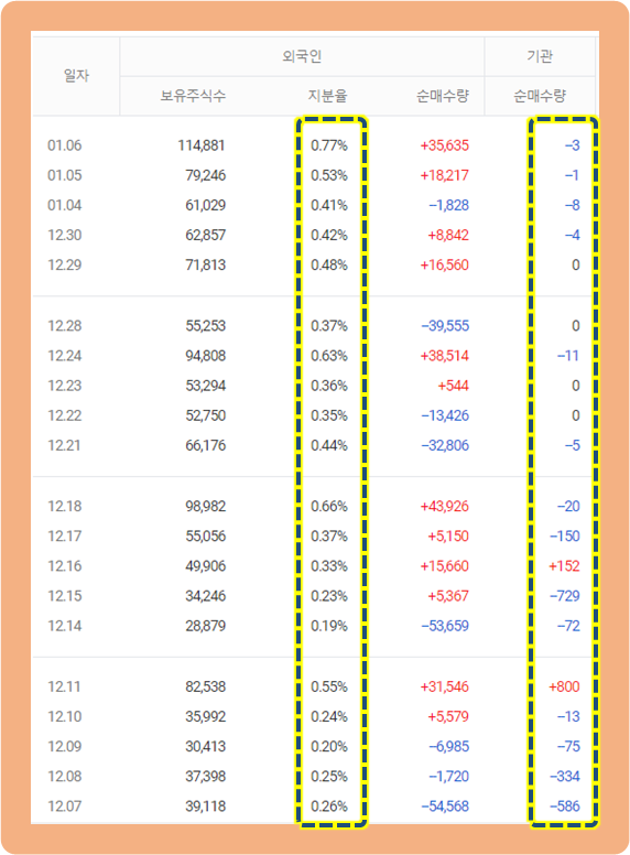그리고 외국인 지분은 점차 증가하고 있고, 1% 미만을 유지하고 있습니다.