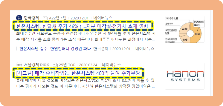 그리고 한온시스템의 최대주주인 한앰컴퍼니가 한온시스템의 지분 매각 시기를 조율 중이라고 하는데요.
