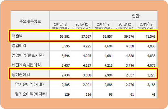2015년 ~ 2019년 12월, 연간 매출액과 순이익 모두 꾸준히 증가하고 있습니다.