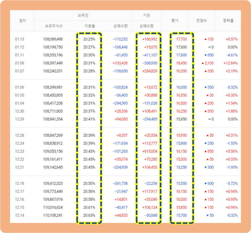 기관들 매매 추이를 보시면 주식을 엄청나게 사들이고 있구요.