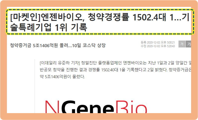 엔젠바이오의 상장 전 공모가 및 경쟁률