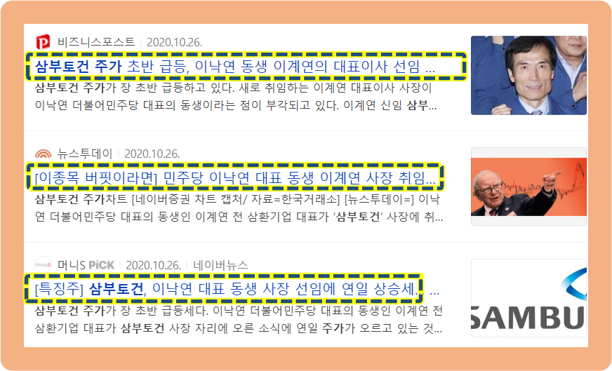 또한 20년 10월경, 민주당 대표 이낙연씨의 동생 이계연씨가 삼부건설의 신임 대표이사 사장으로서 새로운 취임 발표를 했습니다.