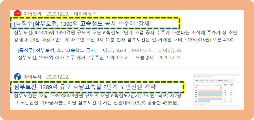 2020년 12월에는 1,390억원 규모의 호남고속철도 2단계 건설 계약을 체결했다는 발표를 했습니다.