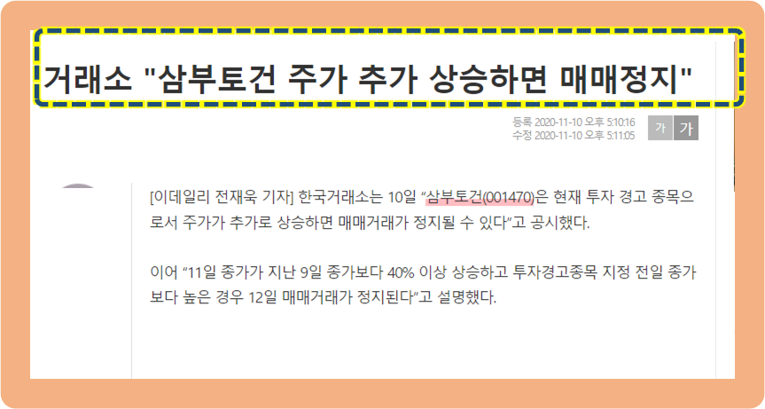 그리고 20년도 11월경 매매정지가 될 뻔하기도 했었는데요.