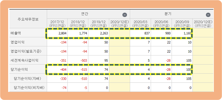 4분기 기준 당기순이익 실적이 나오게 된다면, 2020년에는 연간 순이익은 2019년에 이어 흑자가 될 것으로 예상되고 있습니다.