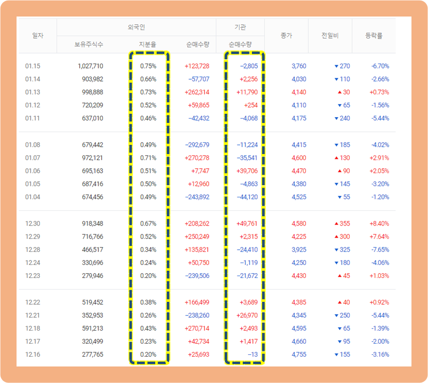 외국인과 기관들의 투자 동향에 대해 살펴보겠습니다.